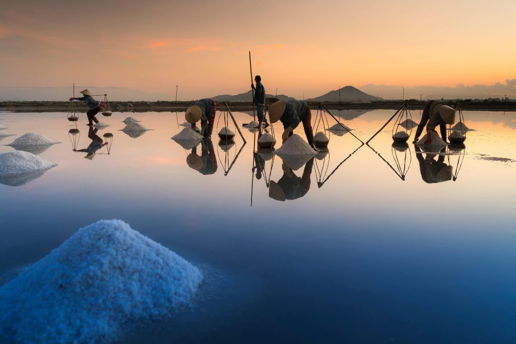 The contrast between white salt fields, blue sky, and nearby Cham villages creates a unique landscape that feels both raw and poetic—perfect for travelers seeking off-the-beaten-path destinations.